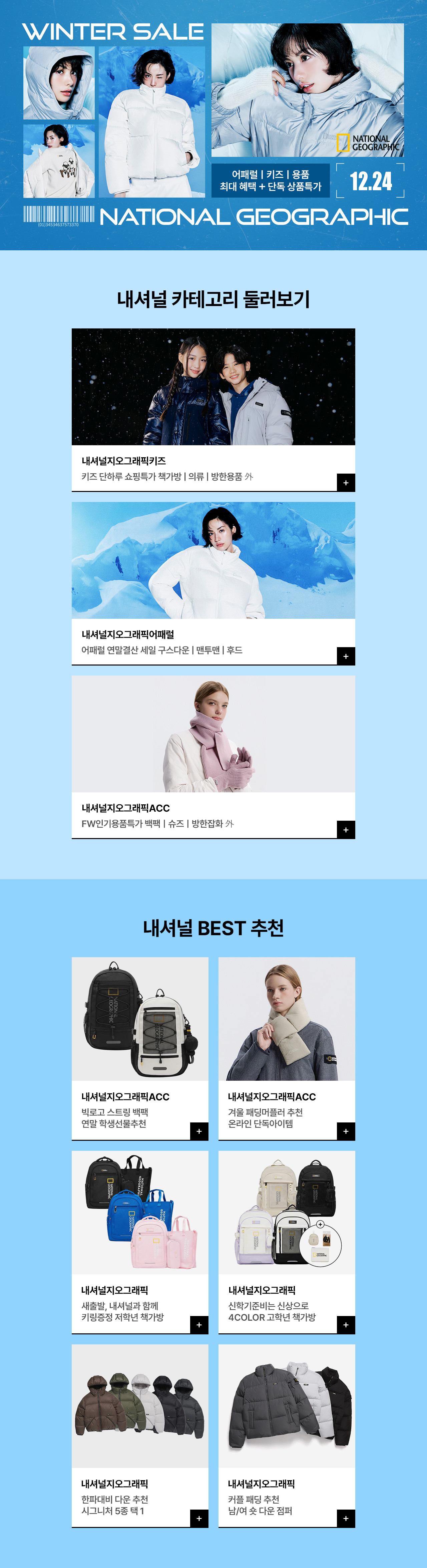 [12.24] 내셔널지오그래픽 연말 원데이특가 어패럴/용품/키즈 최대 30%쿠폰혜택