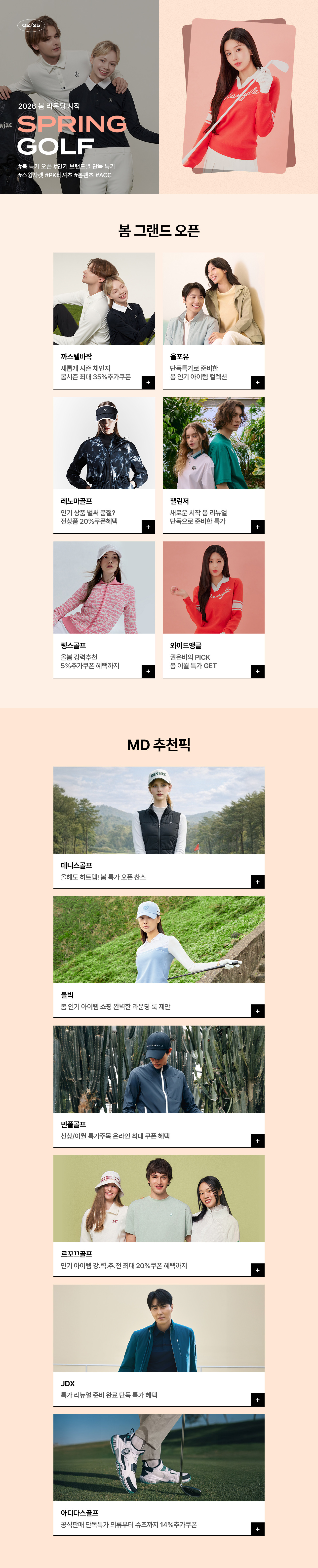 26년 봄 라운딩 오픈! #브랜드별 단독특가 #스윙자켓 #PK티셔츠 #봄팬츠 #ACC