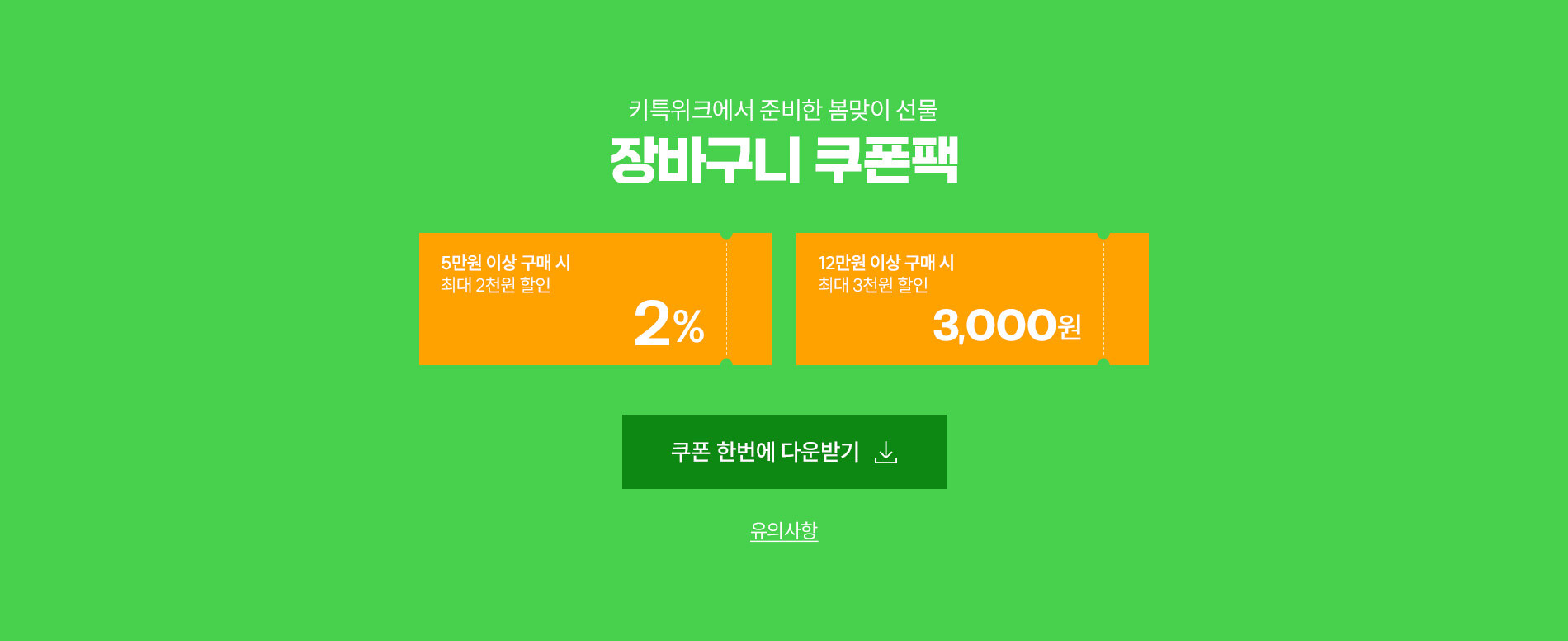 - 12만원 이상 구매 시 3,000원 장바구니 쿠폰