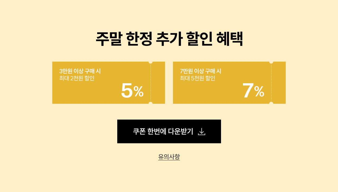 - 7만원 이상 구매시, 최대 5천원 할인