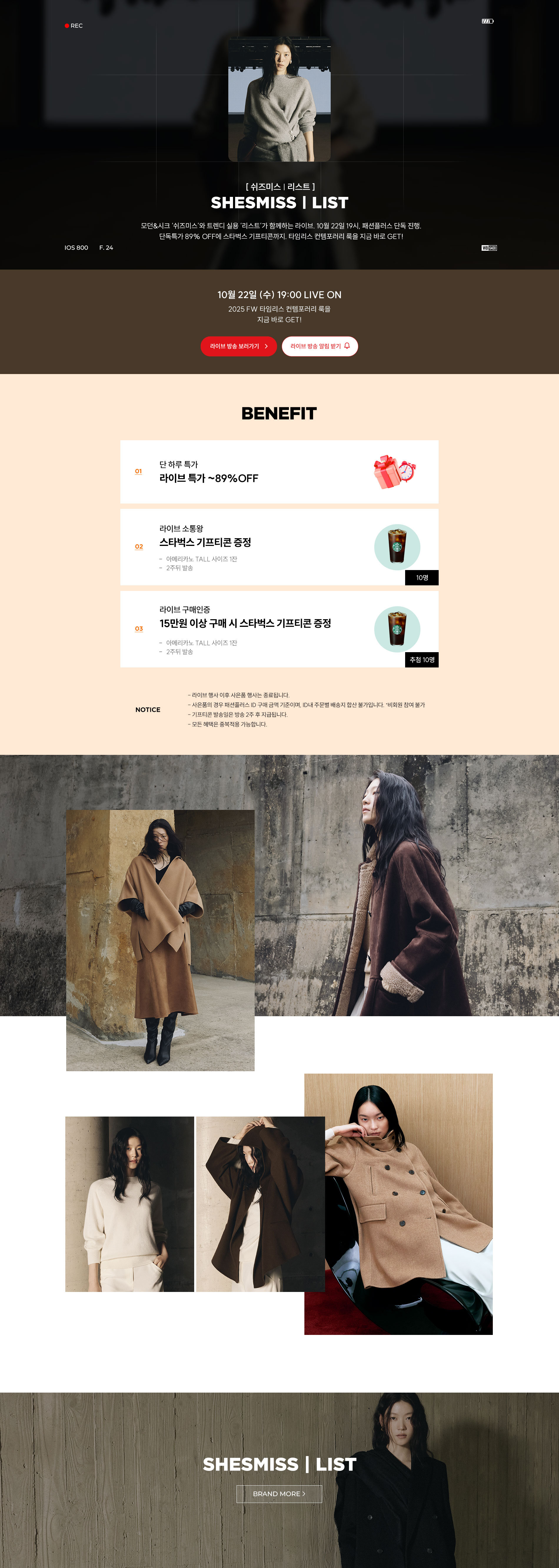 [쉬즈미스|리스트] FW 인기템 라이브 한정특가+추가 쿠폰