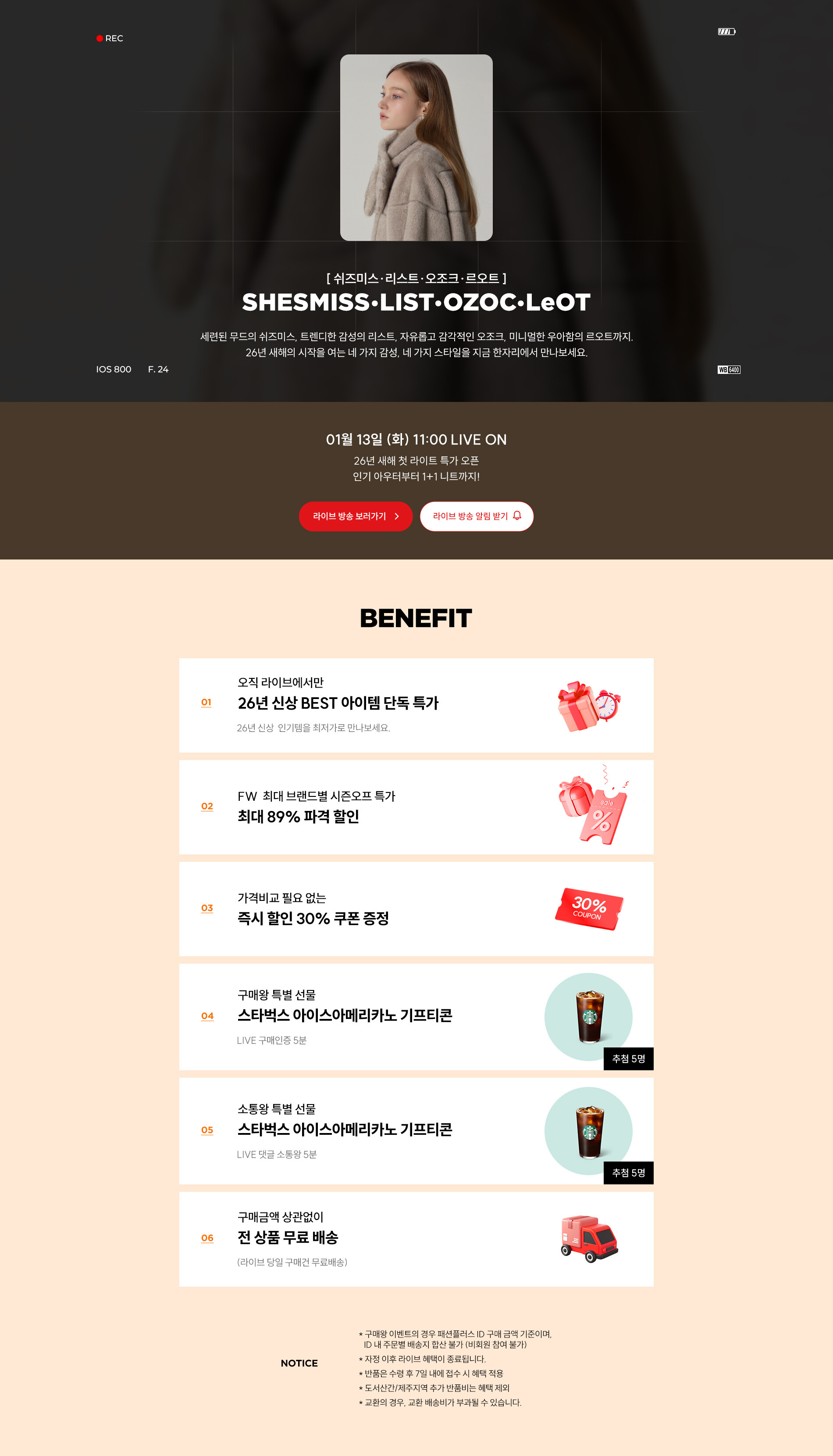 [르오트ㅣ오조크ㅣ쉬즈미스ㅣ리스트] 1/13(화) 11시 라이브 특가 OPEN !