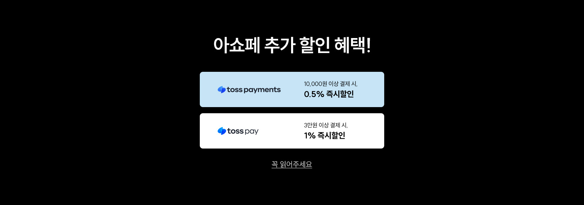 토스페이 30,000원 이상 결제 시, 1% 즉시할인
