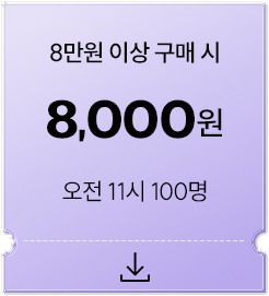 - 오전 11시 & 오후5시 선착순 쿠폰 10% (8만원이상 구매시)